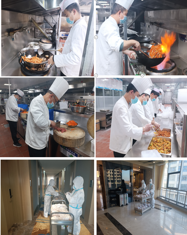 “疫情防控工作專班及高速卡口工作防疫逆行者們不顧危險奔赴一線,我們當仁不讓為他們保障后勤!”每一位職工服從公司統一指揮,堅守自己的工作崗位。每天凌晨3點,廚房里就開始熱鬧起來了,切菜、掂勺、出鍋、裝盒……廚師們戴著口罩、帽子、手套,“全副武裝”地站在操作臺前,有條不紊地開始為“最美逆行者”每日三餐忙碌準備,保障防疫逆行者們在酒店期間能安心食宿。