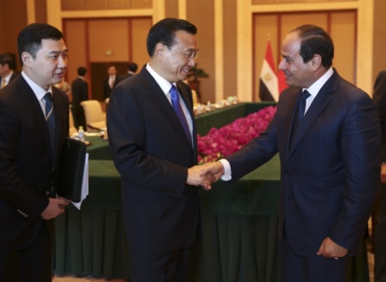 李克強總理會見埃及總統塞西,就對方希望"加強反恐合作"提議表示:"我們既要加強反恐合作,也要妥善解決熱點問題,更要高度重視發展經濟,以鏟除恐怖主義傳播的土壤。"