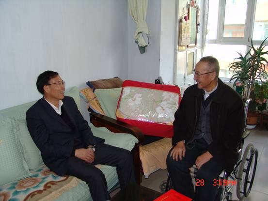 2013年1月28日,春節(jié)來臨之際,省委組織部王志明副部長在省國資委黨委副書記毛占彪、物產集團領導白家林、王仁芬的陪同下,走訪慰問了集團系統生活困難老黨員肖振東。王志明副部長親切地詢問肖振東的身體狀況、生活和家庭情況,發(fā)放了慰問金和慰問品,并希望他保重身體,愉快安度晚年。老黨員肖振東激動地表示感謝黨組織的關懷,感謝上級領導的關心!